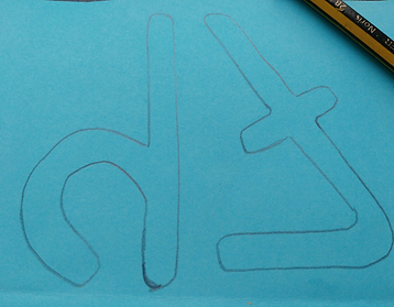1. Dibujo de la tipografía al revés para que se lea al doblar la cartulina y añadir un foco de luz detrás de las letras.